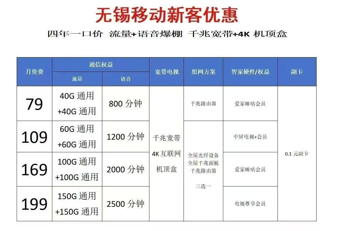1、江阴安装移动宽带最低每月1元起,免费上门办理