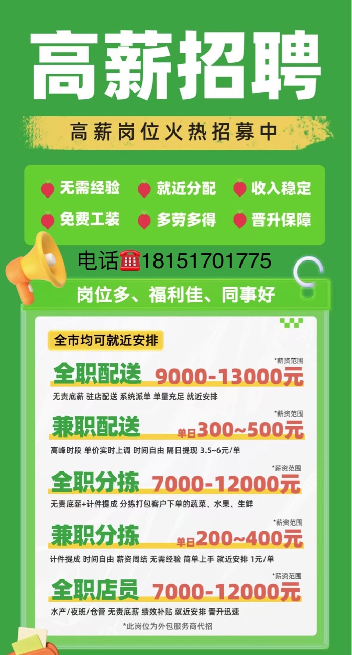 叮咚买菜全职配送员高薪等您来挑战不封顶8-13k不封顶18151701775