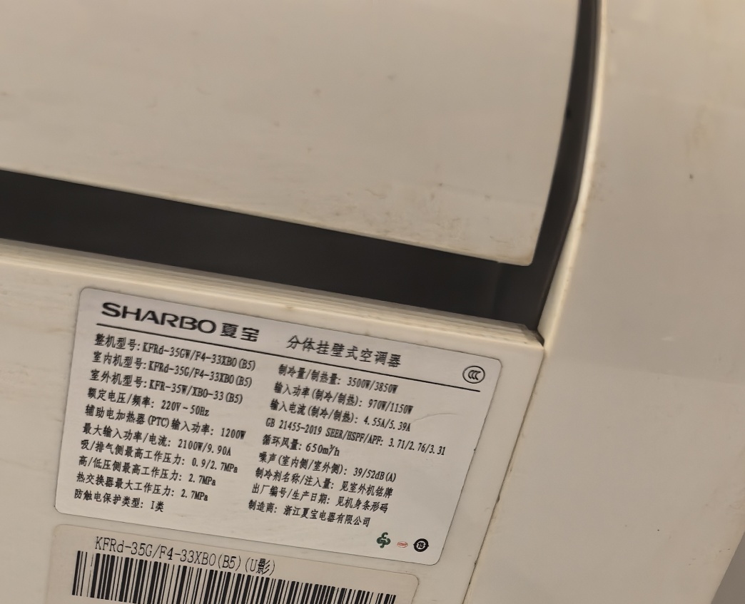 出一台夏宝大1.5匹挂式空调