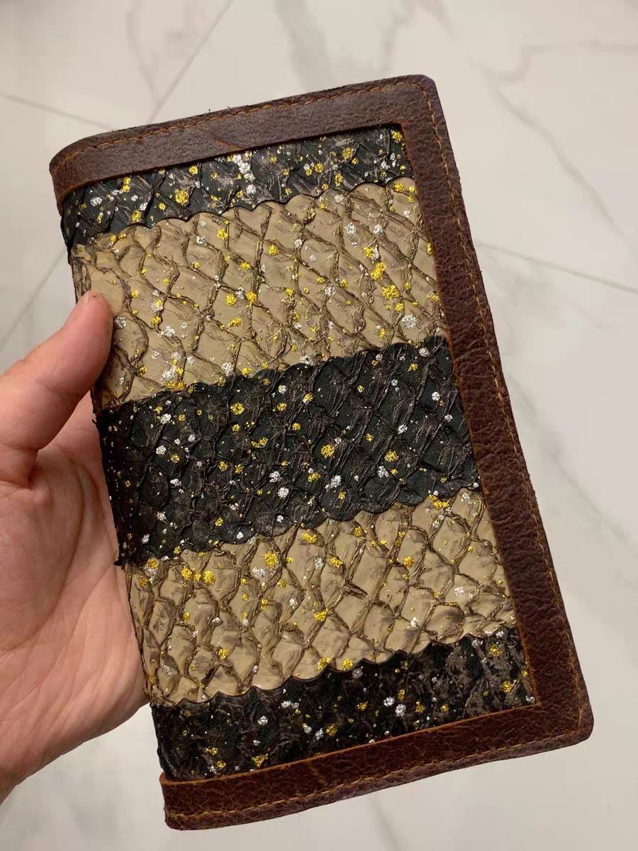 手工皮具~特色复古鱼皮拼色a6瑕疵手账本