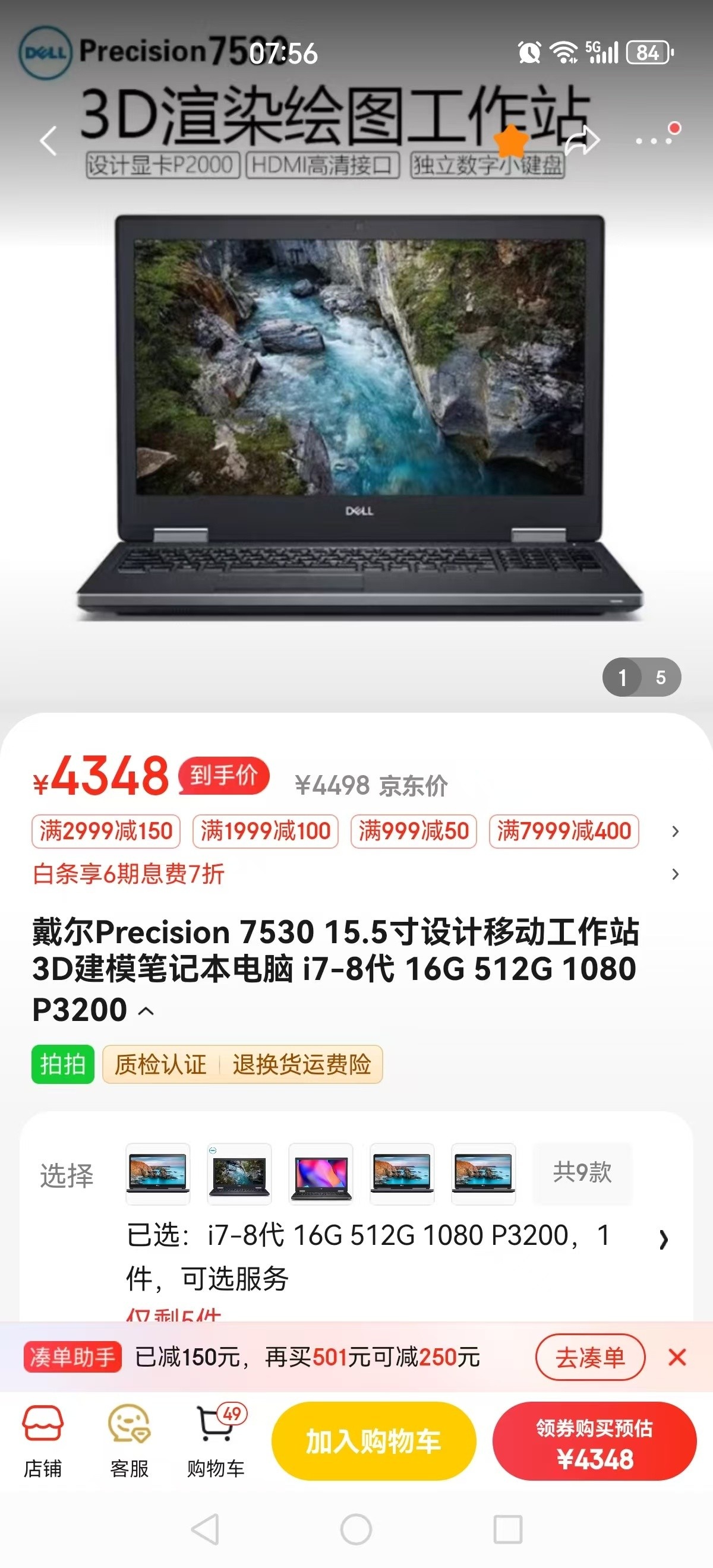 戴尔7530移动工作站 i7-8750H/32G/512G固态/独立6G/15寸