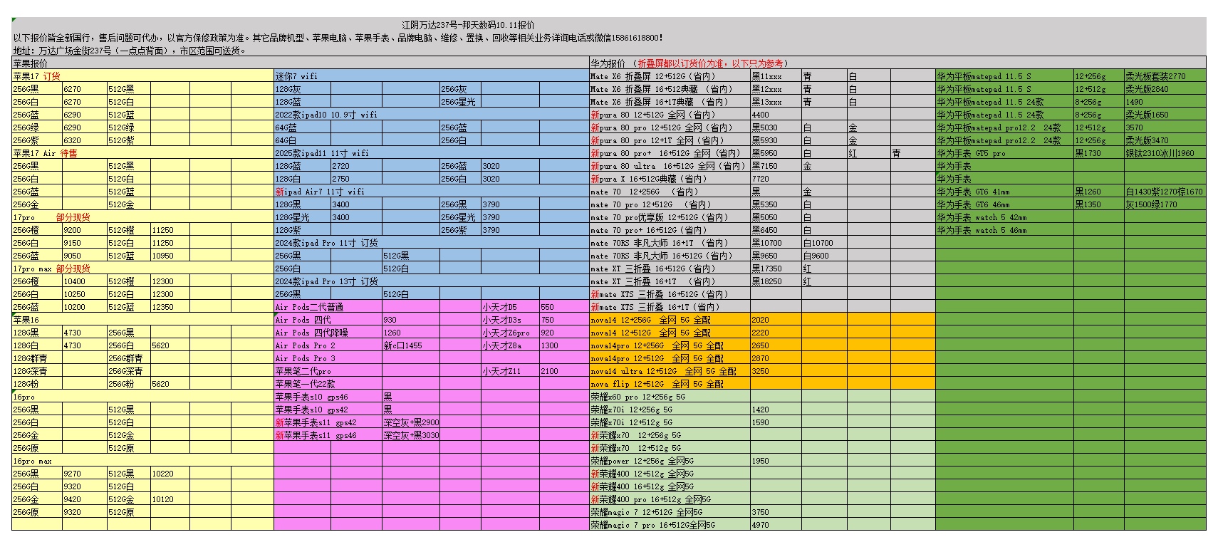 苹果华为荣耀10.11报价