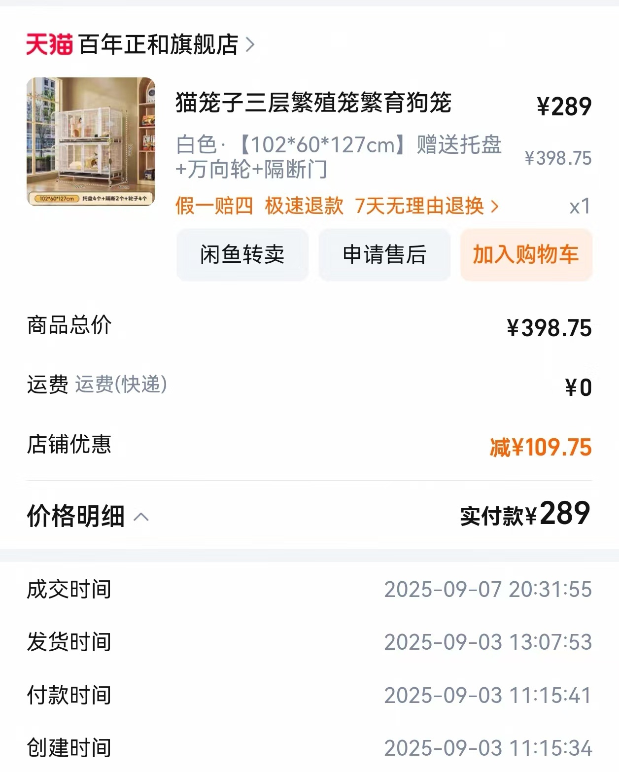 双层猫笼子9.9成新