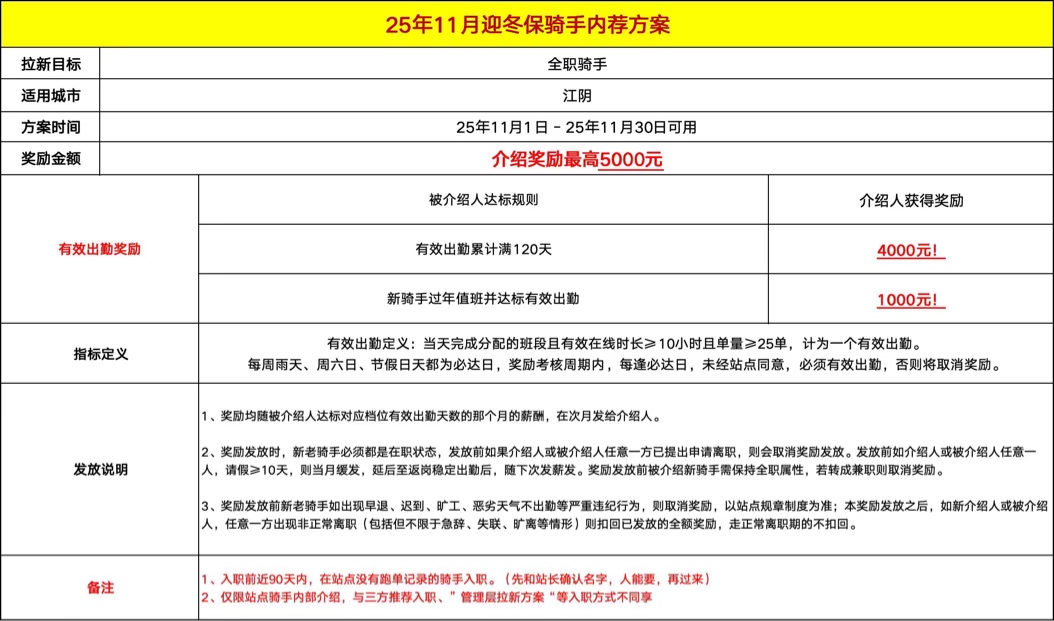 现江阴全城招收全职/兼职骑手,入职专送5000!介绍奖(不封顶,多介绍多得奖励)
