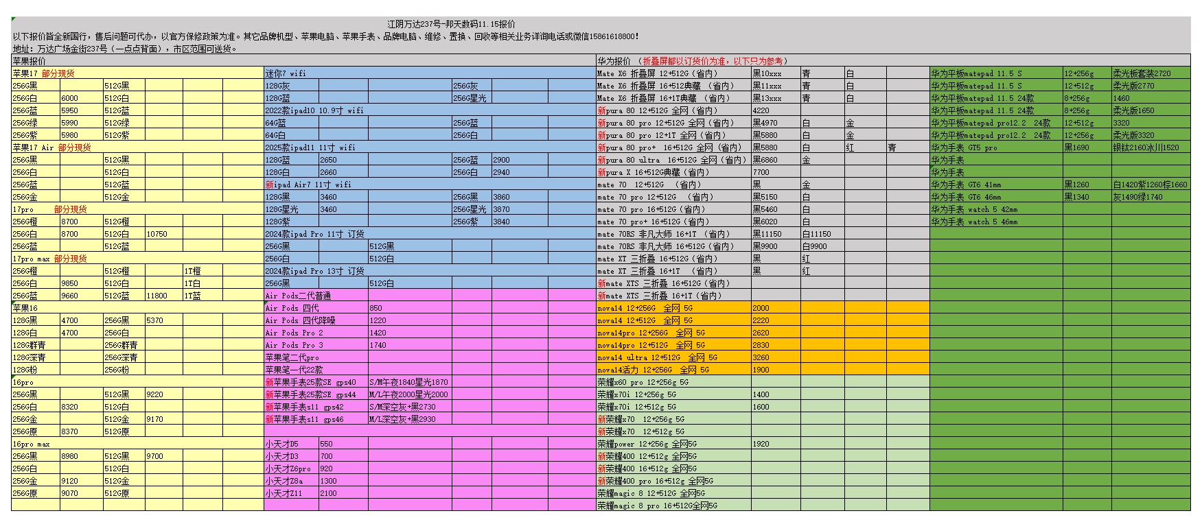 苹果华为荣耀11.15报价