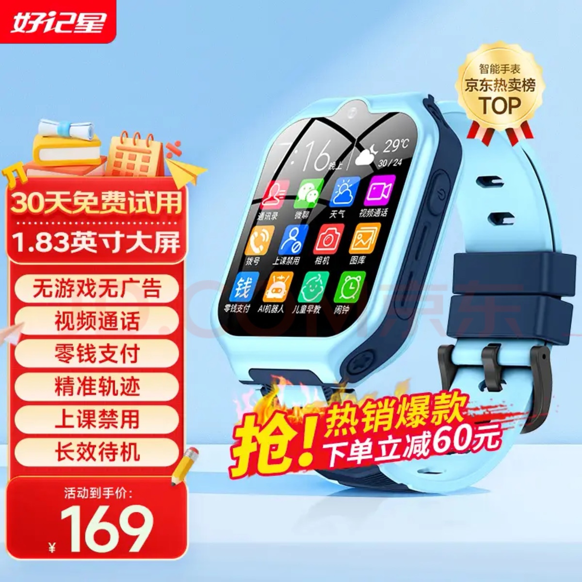 出好记星全新电话手表一个,蓝色,100元,市区自提,VX:hls245143