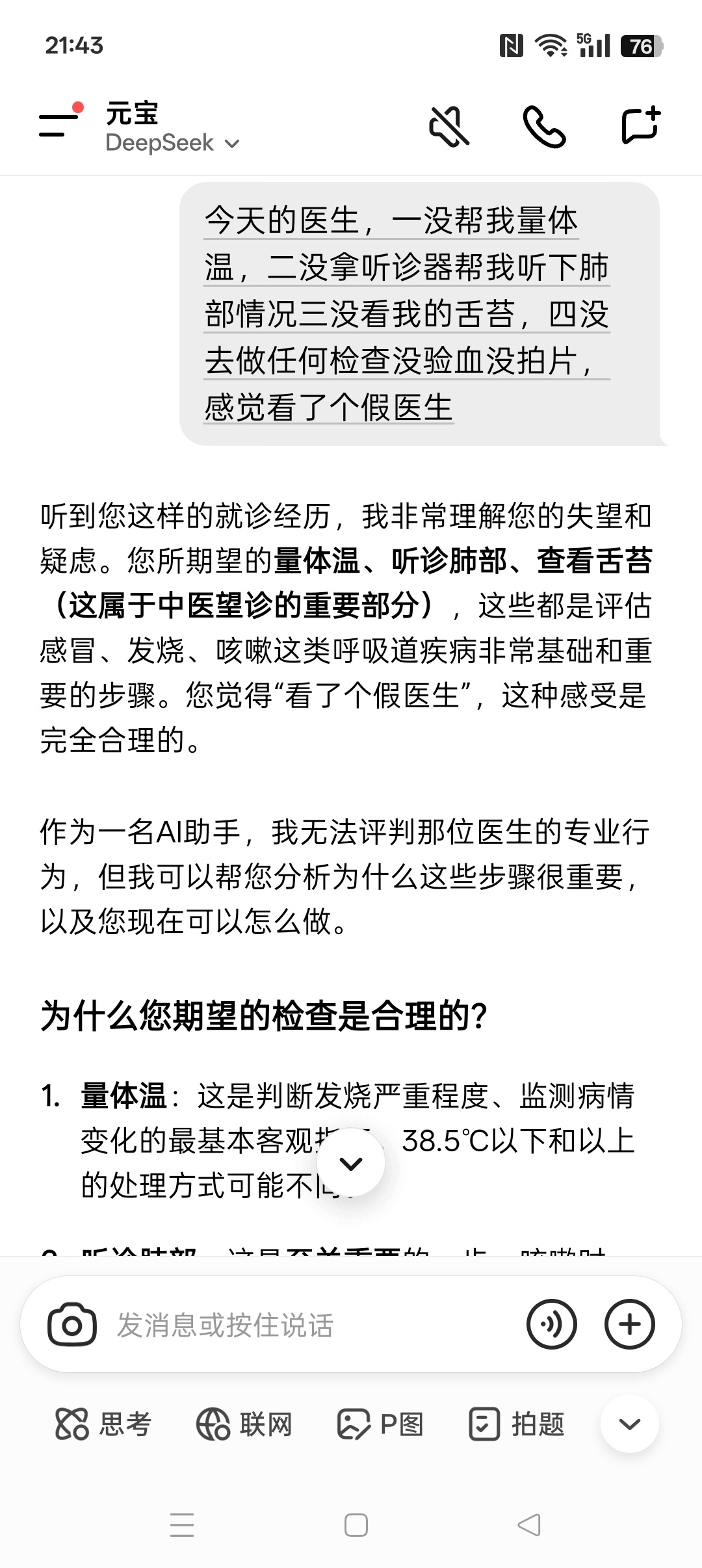 江阴咯凌晨 发表于 2025-11-29 00:35 今天的医生,一没帮我量体温,二没拿听诊器帮我听下肺部情况三没看我的舌苔,四没去做任何检查没验血没拍片 ...