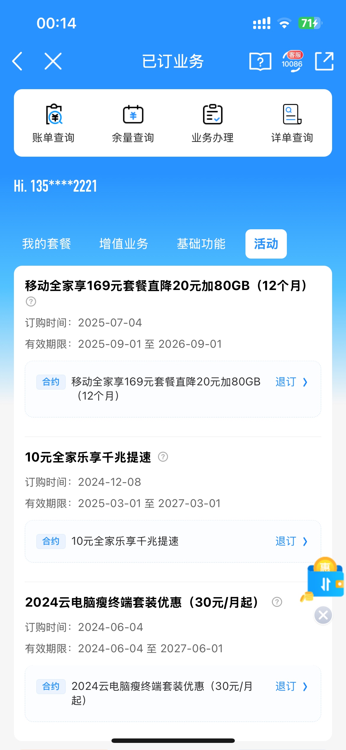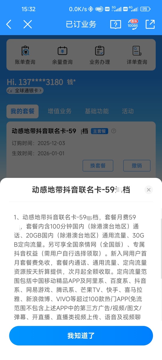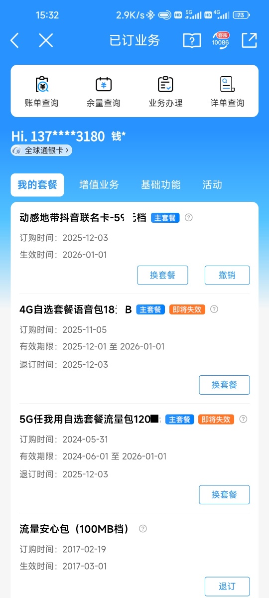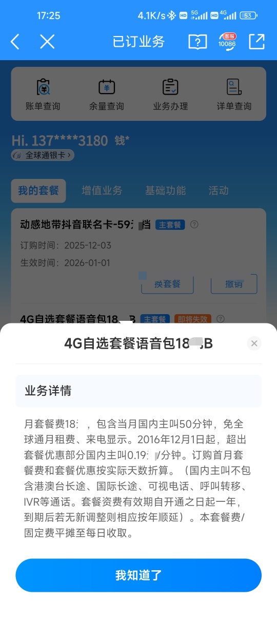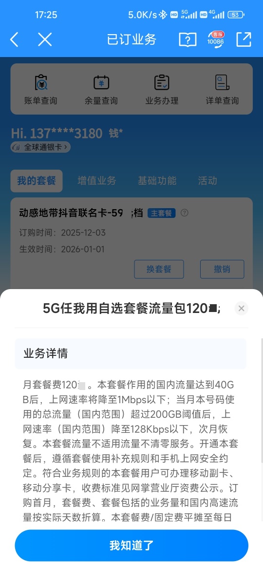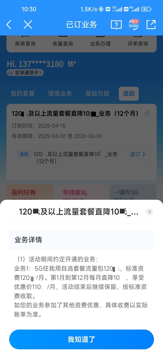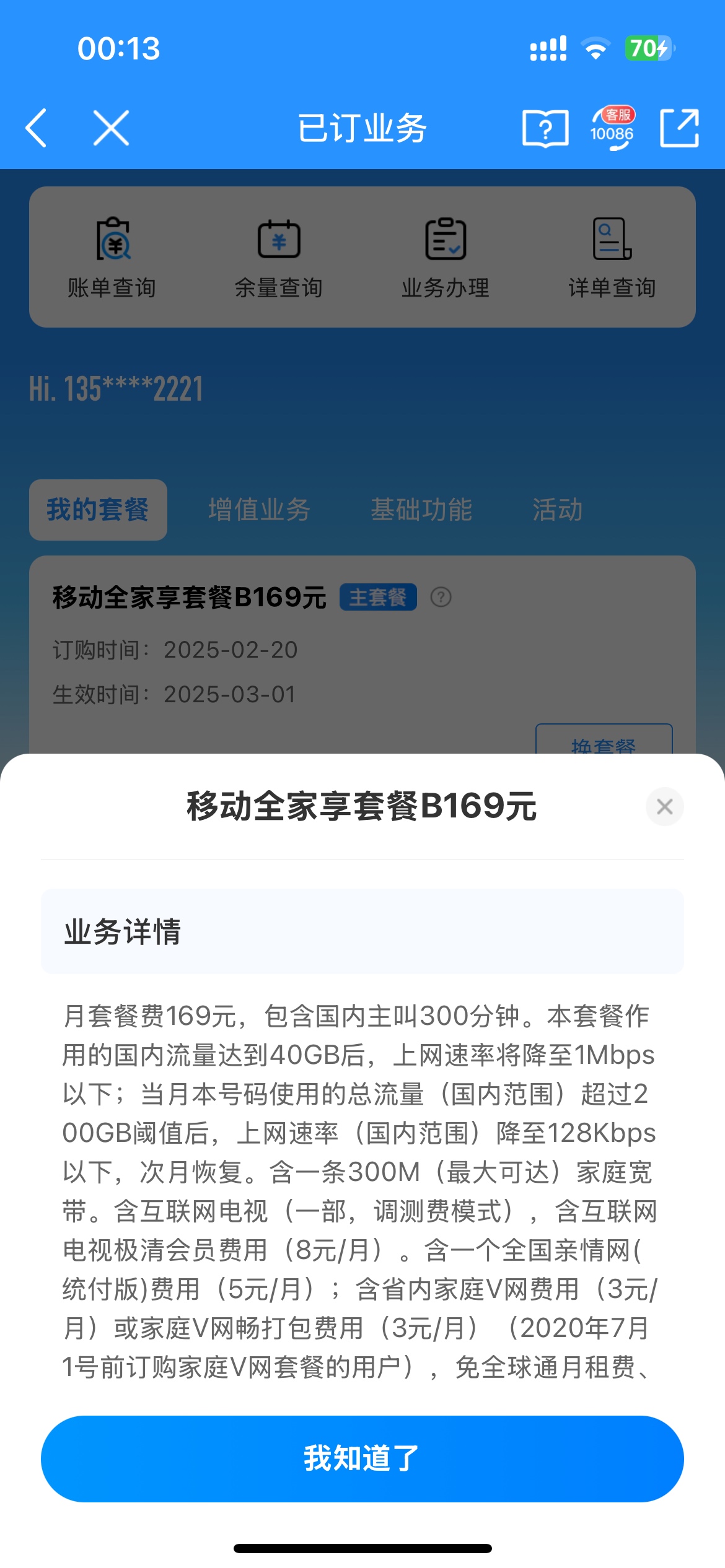 我的是169元的套餐