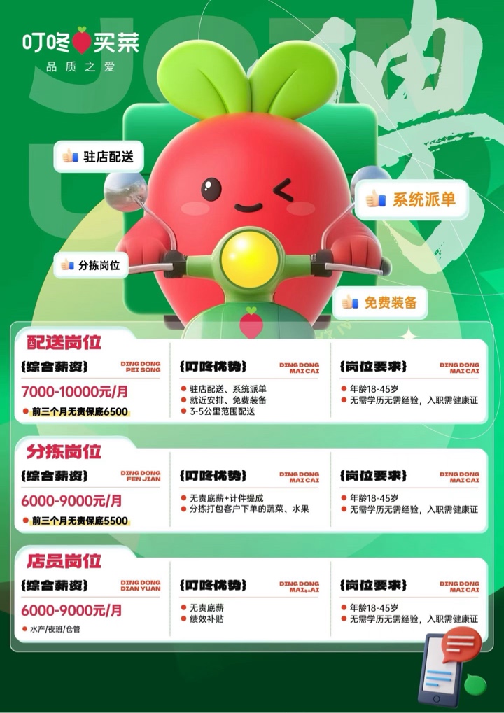 叮咚买菜持续招聘中