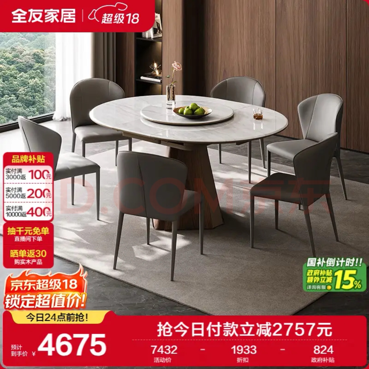 全新未拆封 全友家居现代简约微晶石餐桌客厅家用高级感可伸缩功能餐桌椅组合新款 京东自营旗舰店购买 还未发货 江阴新桥自提或者送货 4000 v:cc17834566453 一桌6椅