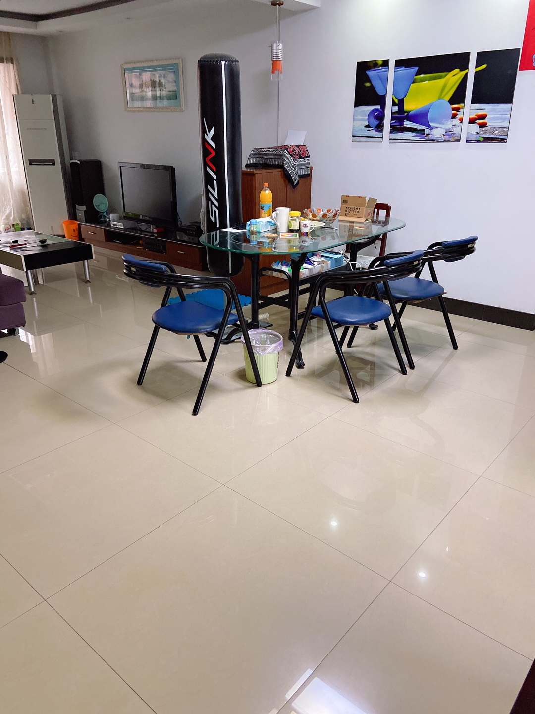房子是三个房间的,一个房间放东西,两房二厅二卫出租,双阳台超大客厅厨房卫生间,停车方便