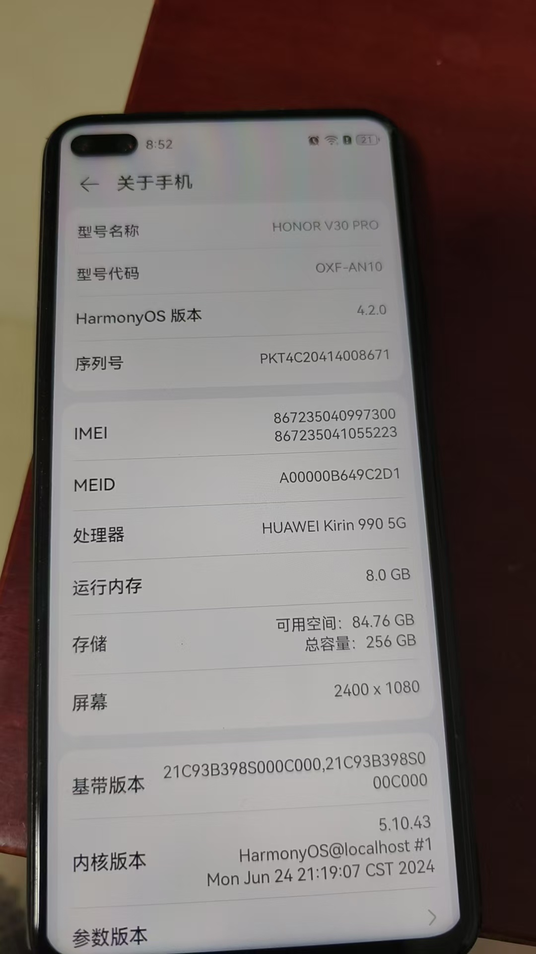 出荣耀V30 PRO 手机一台
