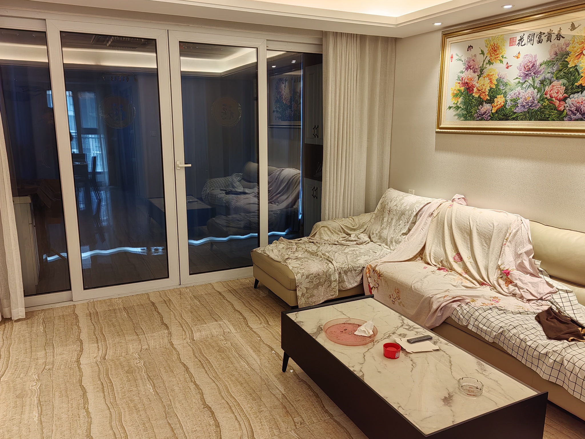 地砖通铺显大气,吊顶+背景墙硬装到位,无需额外改造;家电涵盖中央空调、智能马桶、品牌烟机灶具、定制衣柜等,家具家电所见即所得,真正实现“拎包入住”,省去装修时间与成本。房屋保养极佳,无异味无破损,可直接用作婚房或三代同堂居住。