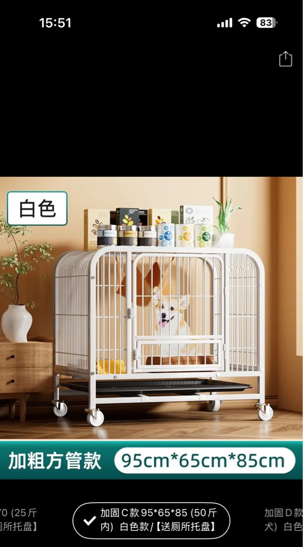 几乎全新狗狗笼,95*65*85cm,白色加粗款的,带厕所托盘,结实耐用,空间大