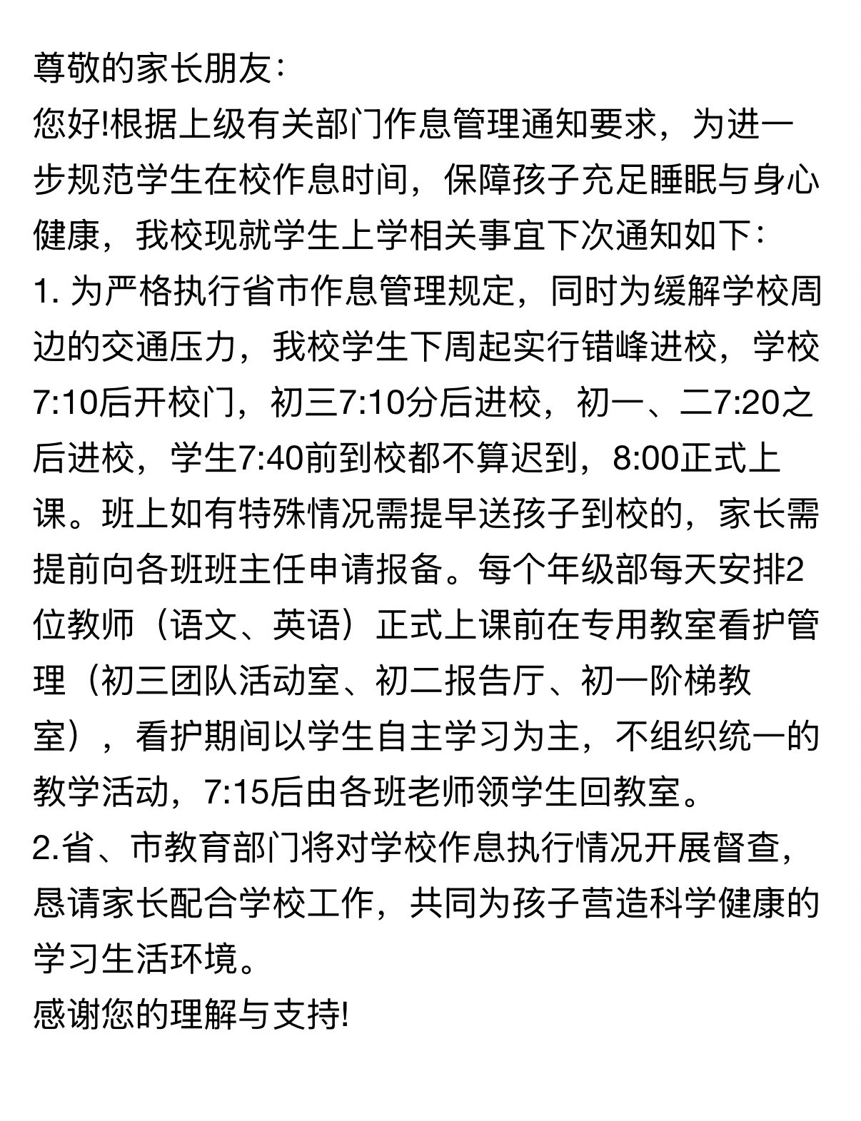 初中7点10分开校门!