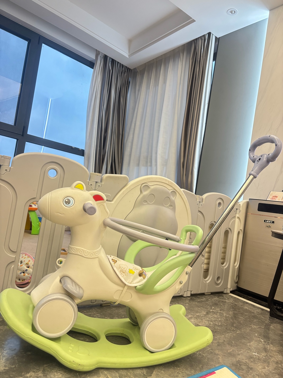 全新自行车80,红色滑板车50,蓝色手推车50.粉色学步车免费,青色摇摇50.超厚围栏210,餐桌100,都是品牌的,白菜价出,有心者an72454029