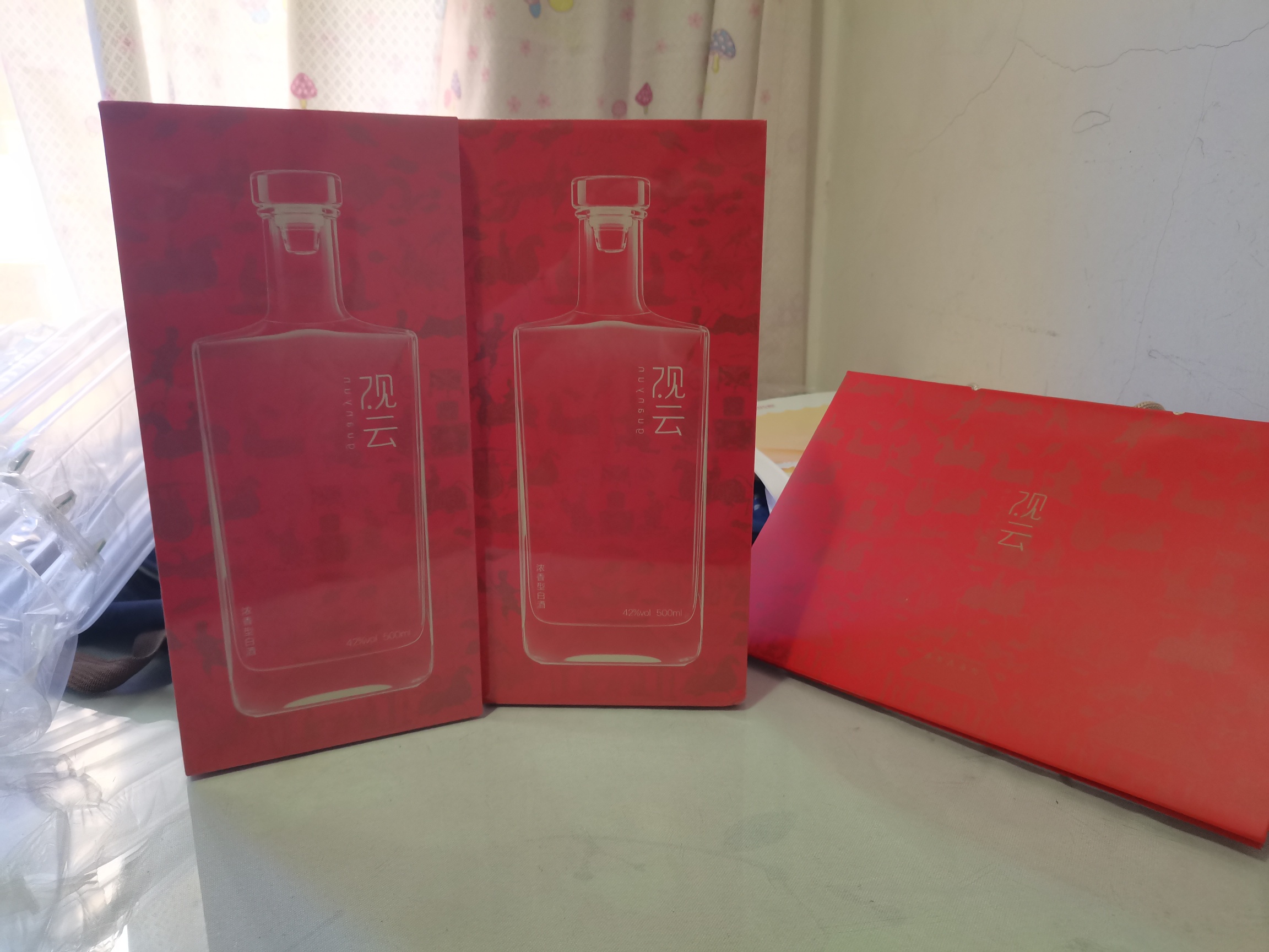 出两瓶观云道喜白酒