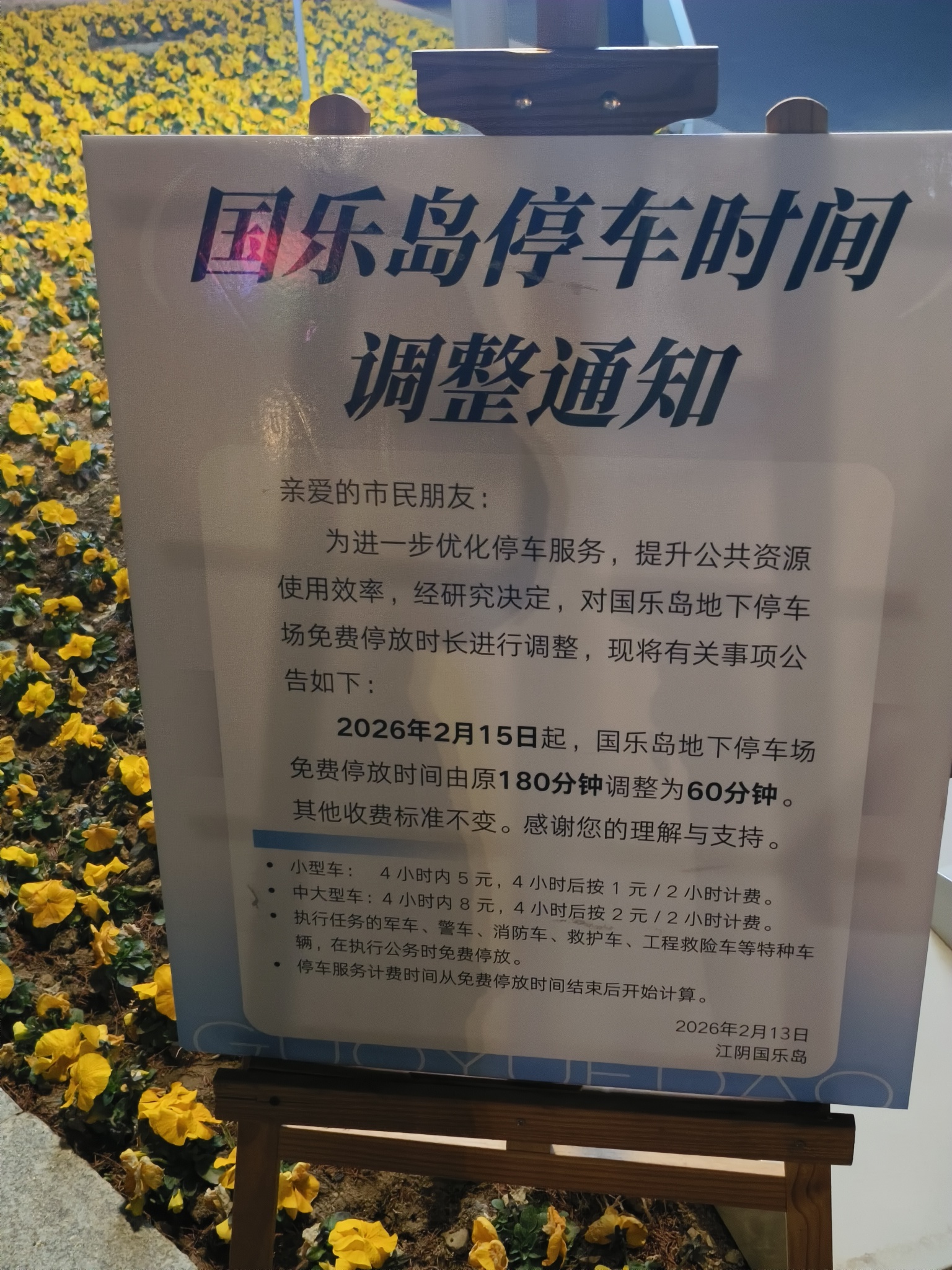 春节期间,许多商圈为方便市民出行,纷纷推出免费或减免停车费的惠民措施。然而,国乐岛却反其道而行之,将原本免费的停车时长从180分钟大幅缩短至60分钟。这究竟是因为生意太火、客流太多,还是迫不及待地想在大年夜靠君山寺的香客大赚一笔停车费?如此操作,吃相未免有些难看。公告中所谓的“优化停车服务”,究竟优化在了哪里?分明更像是“加速创收”吧!