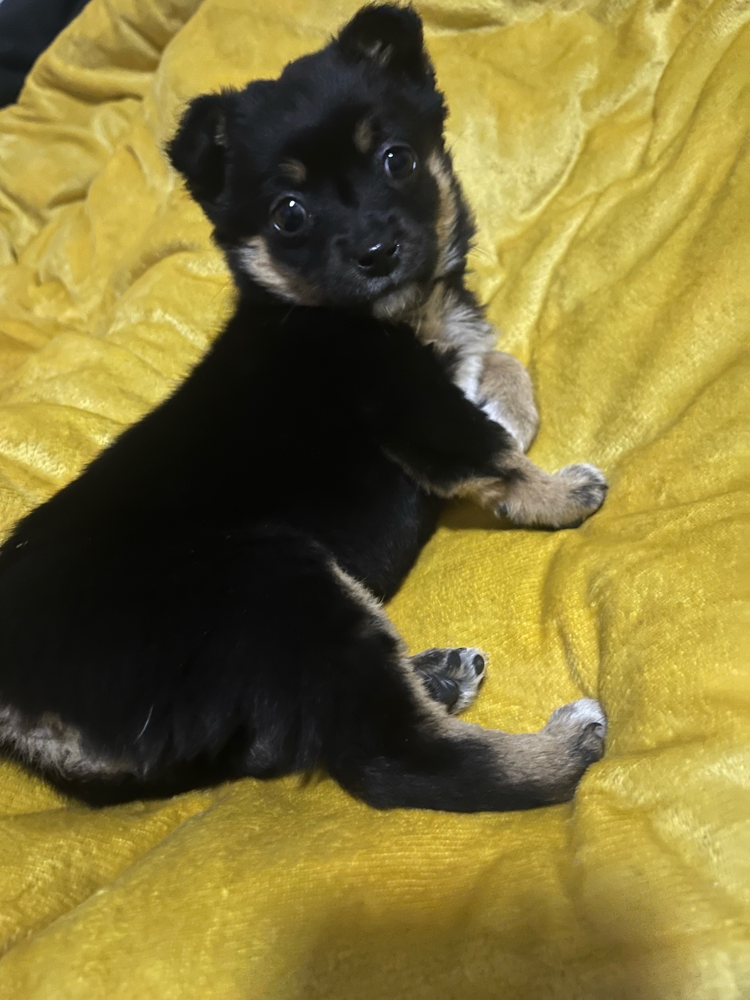 全黑四眼包金流浪小狗找领养,暂时寄养在朋友家,很可爱!在江阴云亭