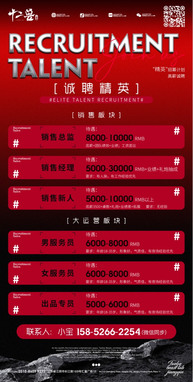 点燃江阴十二兽酒吧的夜激情,挑战高薪!寻找最会玩的年轻选手