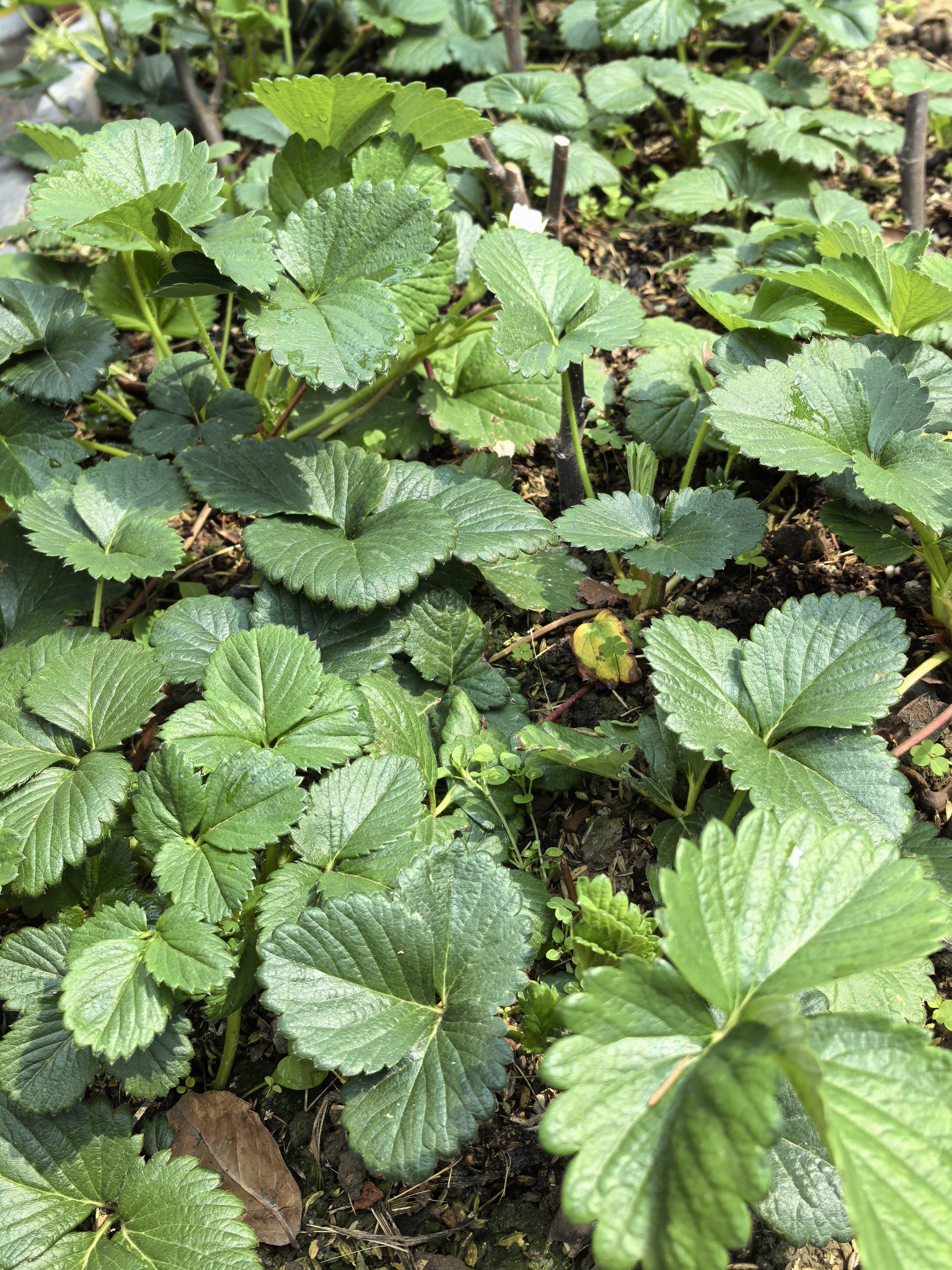 地上的草莓长的不错,估计四五月份能长出很多匍匐茎,如果能熬过夏天的高温,那我今年就不用买草莓苗了