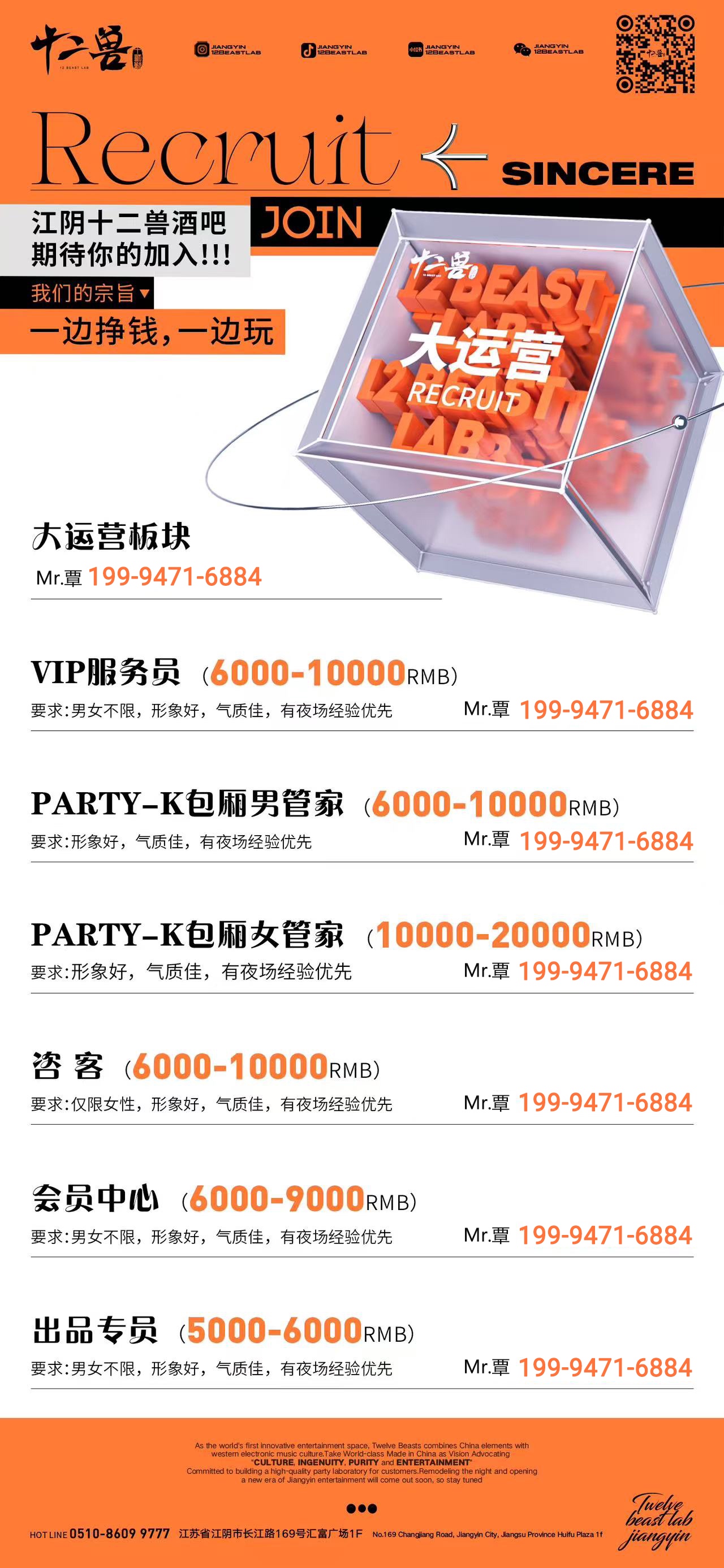 1.男女服务员,月5000~10000不等