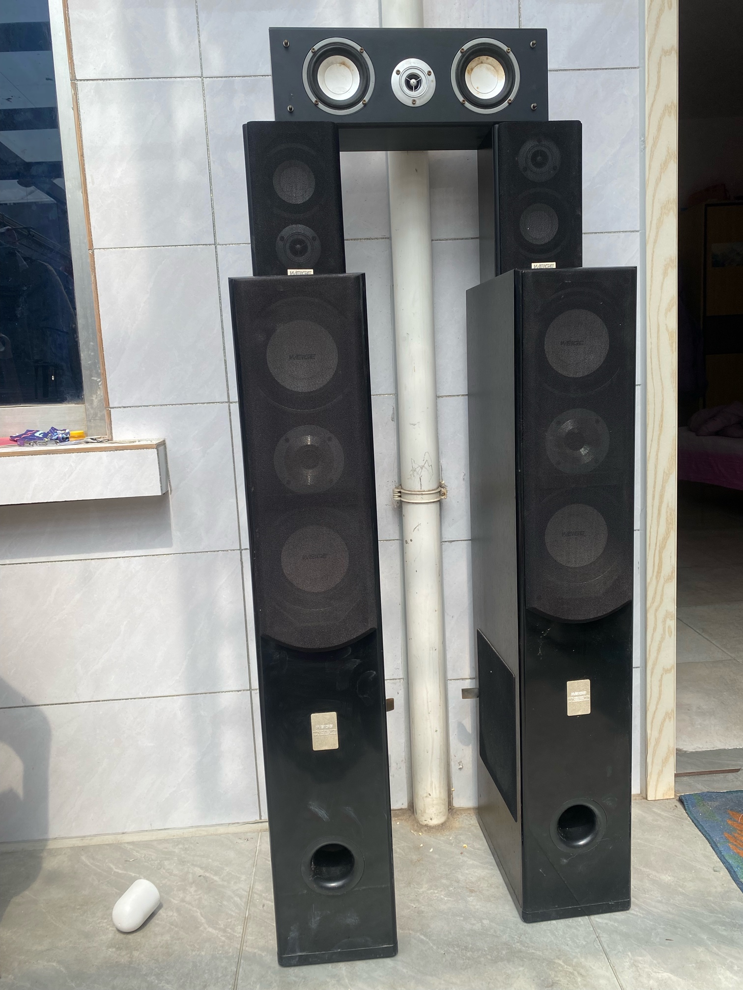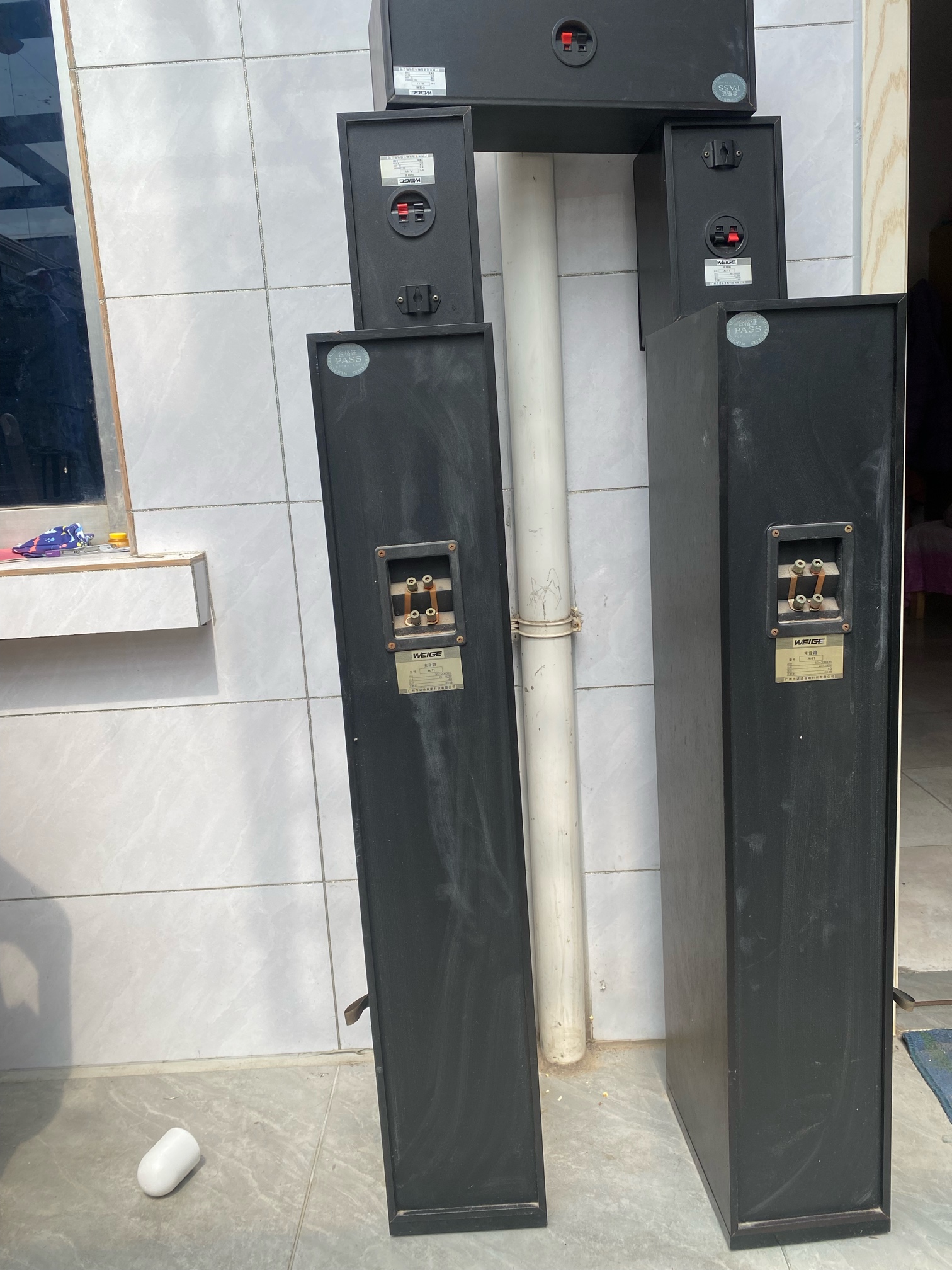 一套诺迪音响,两个高音,两个环绕音,一个中音,可以正常使用,380元