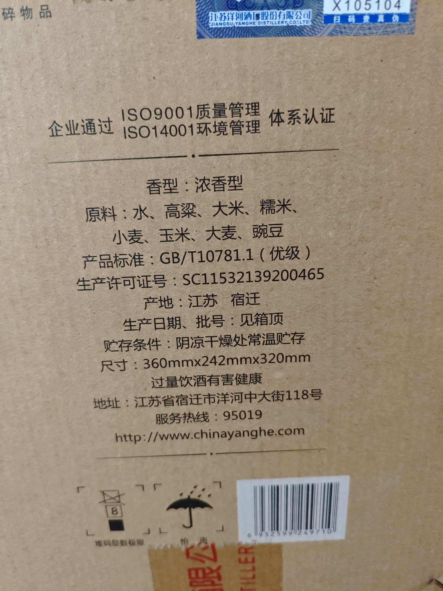 588出两箱2020年的洋河特曲四大名楼