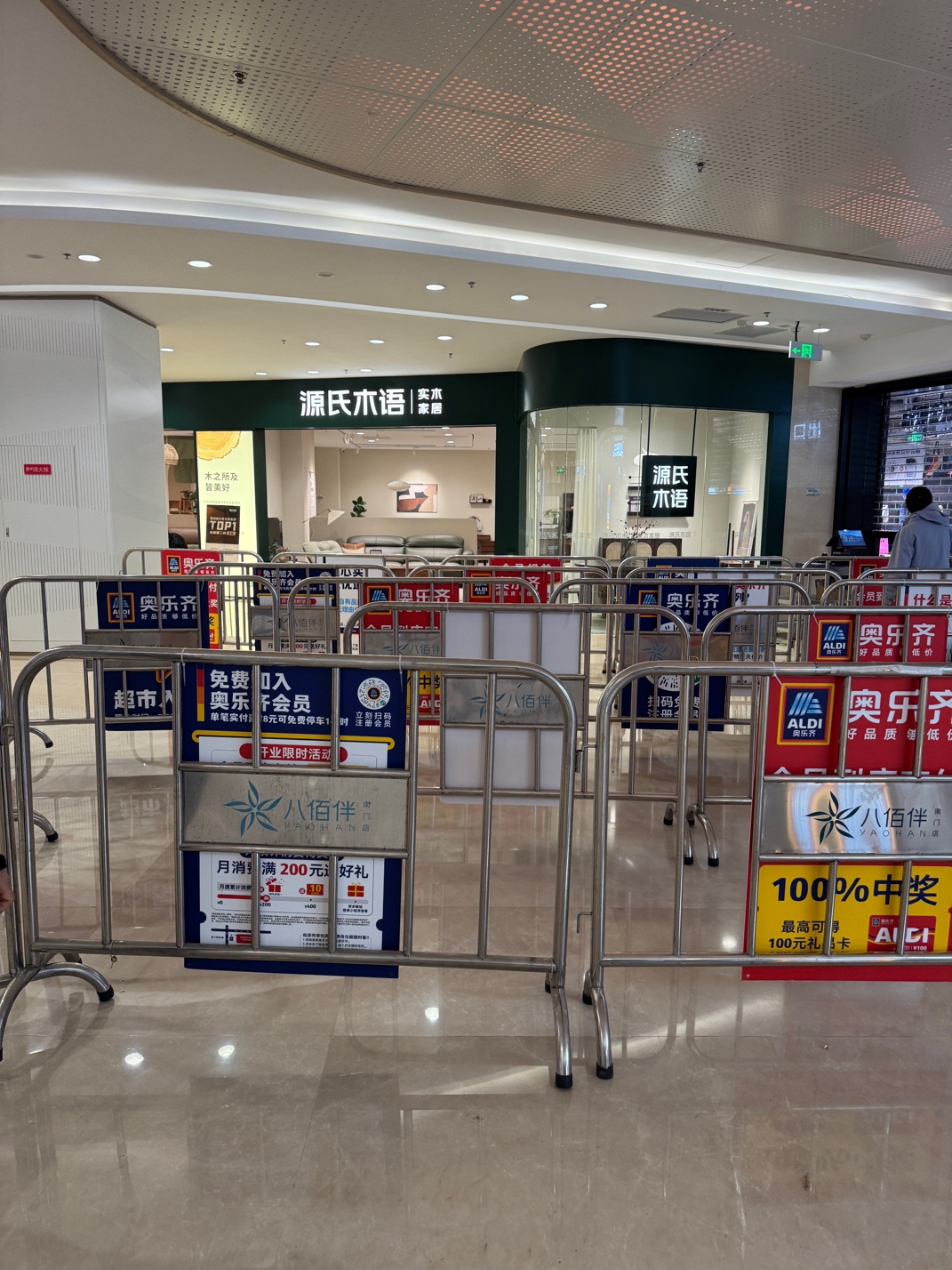 开业的时候8万人去奥乐齐,只要千分之一的80人顺便逛了下源氏木语,买走8套家具,想想都开心